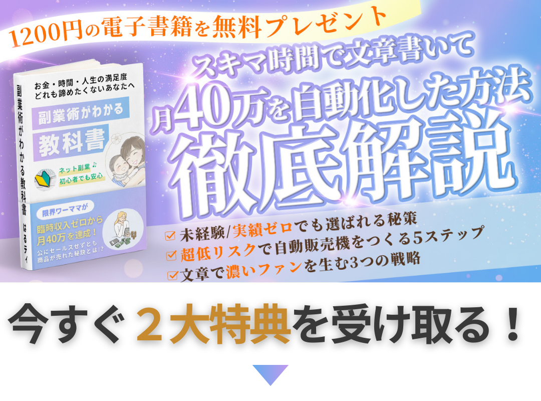 無料の書籍「ネット副業の教科書」を受け取り、読ませていただきました。